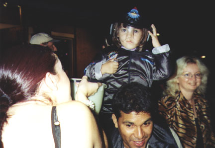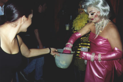 | Jack's cousin Holly and her honey Ravi. | Grace goes "reverse trick-or-treating" on Bourbon Street. | Someone else who knows diamonds are a girl's best friend. ;-) Too bad it didn't occur to me to ask for a picture together until after we'd lost sight of "Marilyn" here... |