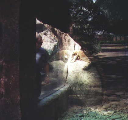 | In the Jaguar Jungle, easily the coolest zoo exhibit I've ever seen, full of reproductions of Mayan ruins, including the Jaguar Plaza at Chichen Itza. | Jack makes like a Mayan sculpture. | Exiting the Jaguar Jungle. |